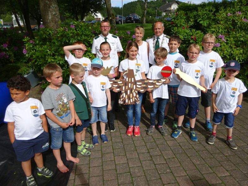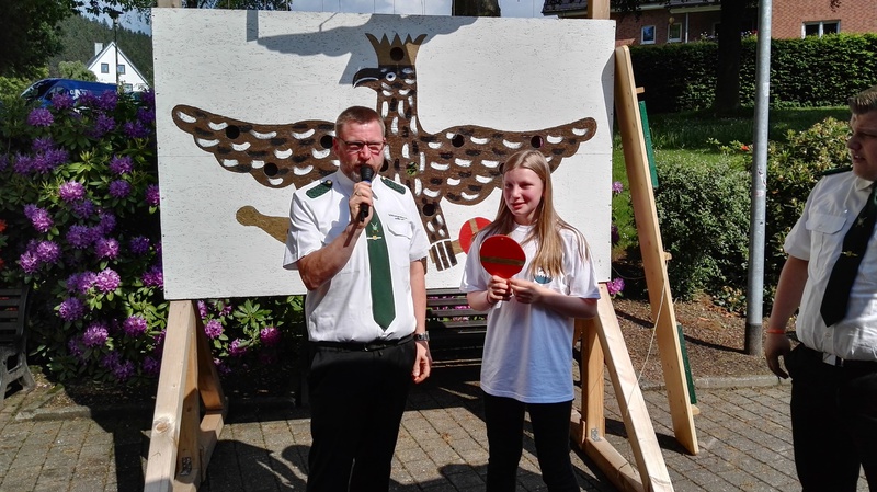 Die Schützengesellschaft Willingen hat bei Kaiserwetter im Kurgarten zwei neue Regenten ermittelt. Lilli Saure sicherte sich die Königswürde bei den Kindern bis 12 Jahre und Johannes Keudel schoss den Adler bei den Jugendlichen von der Stange. Insgesamt traten 28 Kinder im Alter von 4 bis 11 Jahre an und schossen mit Pfeilen auf Klappscheiben die in einem großen Königsadler eingebaut waren. Den Wettstreit bei den Kindern eröffnete der noch amtierende Kinderkönig Jannis Rummel Der erste Ritter war der achtjährige Phil Gross, er sicherte sich mit dem 55. Schuss den Reichsapfel. Danach ging es ganz schnell, nur drei Schuss später freute sich der zehnjährige Ole Grüger über das Zepter. Lea Grötecke komplettiert die drei Ritter bei den Kindern. Mit Schuss Nummer 80 schoss die elfjährige die Krone ab. Nach einer kurzen Pause, die durch die Jugendblasorchester der Schützenblaskapelle Willingen musikalisch gestaltet wurde, begann die Jagd nach der Königswürde. Nach 159 Schuss stand Lilli Saure als neue Kinderkönigin der Schützengesellschaft Willingen fest. Die zehnjährige traf die letzte Klappscheibe blitzsauber und tritt die Nachfolge von Jannis Rummel an. Alle anwesenden Kinder die Interesse hatten wurden mit einem T-Shirt der Schützengesellschaft Willingen e.V. ausgestattet, welches auch gerne beim Schützenfest vom 01. – 03. Juli getragen werden darf.