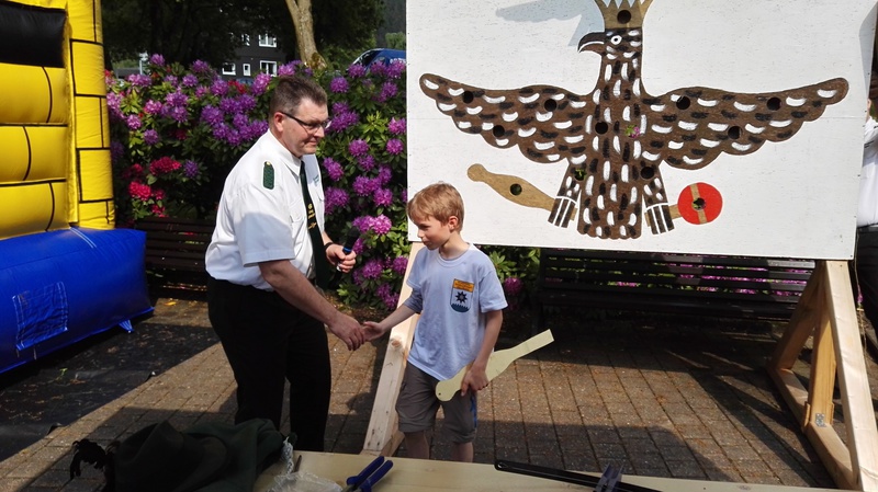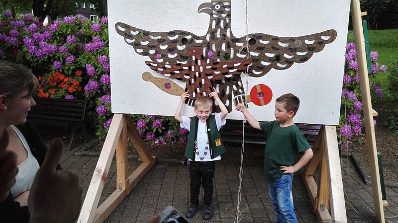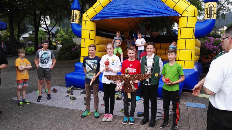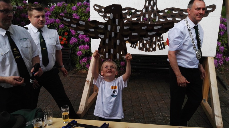 Marc Bärenfänger bei den Jugendlichen und Jannis Rummel bei den Kindern sind die neuen Regenten in der Schützengesellschaft. Mit dem Wettstreit um die Königswürde der Kinder bis 12 Jahre begann das Kinder- und Jugendschützenfest im Kurgarten bei sonnigem Wetter. 19 Kinder im Alter von 3 bis 11 Jahre wollten die Nachfolge von Paula Saure antreten. Mit einer Kinderarmbrust wurde auf einen Vogel mit Klappscheiben geschossen, an den Klappscheiben sind Schnüre befestigt an denen der Vogel und die Insignien hägen. In einem langen Wettstreit sicherte sich Melina Wilke mit dem 92. Schuss den Apfel. Dann ging es Schlag auf Schlag, nur 8 Schuss später holte sich Jannis Kesper mit dem 100. Schuss das Zepter. Mit dem nächsten Schuss holte Lotta Reinbothe die Krone vom Vogel. Weitere 52 Schuss später jubelte der 5-jährige Jannis Rummel über die errungene Königswürde.