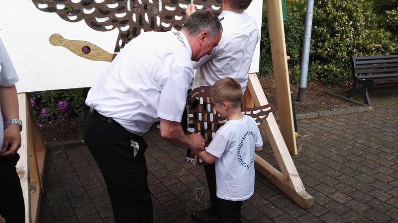 Bei gutem Wetter und vielen Zuschauern sicherten sich zunächst bei den Kindern Moritz Kahrig, Lena Klein und Tessa Witzel die Insignien. Neuer Kinderkönig wurde Henry Wilke.