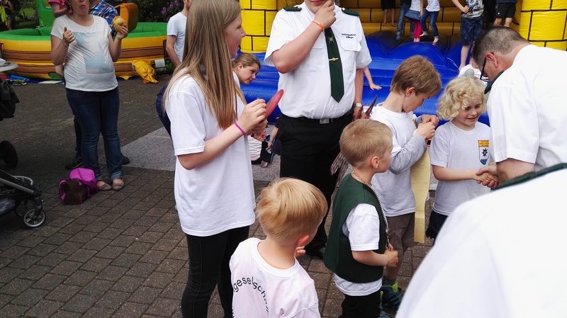 Neben den beiden Königsschießen, wurde ein buntes Rahmenprogramm geboten. Los ging es mit der musikalischen Früherziehung unter Leitung von Gabi Althoff. Im Anschluss übernahm der Nachwuchs der Schützenblaskapelle ehe sich die erfahren Musiker ans Werk machten. Wie schon im letzten Jahr war auch das Tigerentenrodeo wieder im Einsatz. Zahlreiche Jungs und Mädchen haben versucht die Tigerente zu zähmen. Direkt daneben konnte eine Hüpfburg erobert werden. Ein großes Dankeschön gilt unserem Hofstaat der sich um das leibliche Wohl der zahlreichen Eltern, Großeltern und Gäste kümmerte.
