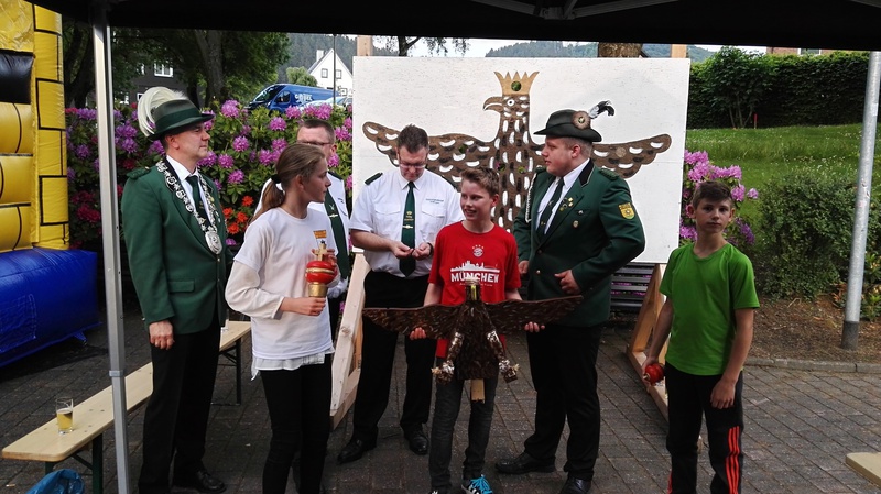 Bei den Jugendlichen wird wie bei den Schützen auf einen hölzernen Vogel geschossen der an einer Stange aufgesetzt ist. Allerdings wird hier mit einem Luftgewehr und nicht mit einem Kleinkalibergewehr geschossen. 10 Jugendliche im Alter von 12 bis 16 Jahren fanden sich am Schießstand ein um einen Nachfolger für den amtierenden Jugendkönig Marc Bärenfänger. Die erste Ritterwürde sicherte sich Lea Grüger mit 45 Schuss. Nun folgte ein zähes Ringen um das Zepter, es sollte 119 Schuss dauern bis Jonas Bäringhausen als zweiter Ritter feststand. Das Gegenteil passierte im Anschluss. Es dauerte nur ganze zwei Schuss bis die Krone bei Melina Wilke fiel und somit die Runde der Ritter ergänzt. Jetzt war die Hatz auf die Königswürde eröffnet. Da die Schützen, die schon einmal die Königswürde inne hatten nicht ein zweites Mal antreten durften blieben sechs Schützen übrig. Nach 66 Schuss, mit dem insgesamt 222., war es Johannes Keudel der sich die Würde des Jugendkönigs sichern konnte und nun ein Jahr die Schützengesellschaft Willingen e.V. vertritt.