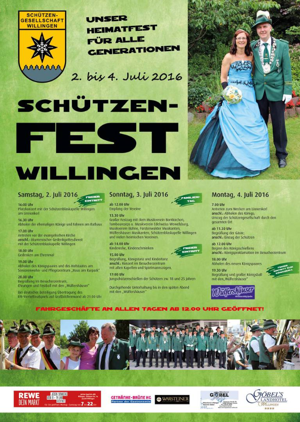 Für das Königspaar Werner und Martina beginnt damit die einjährige Regentschaft. Auf das Willinger Heimatfest folgt in diesem Jahr das Bömighäuser Jubiläumsfest zum 100-jährigen Bestehen des Schützenvereins, dass von Freitag bis Montag gefeiert wird.