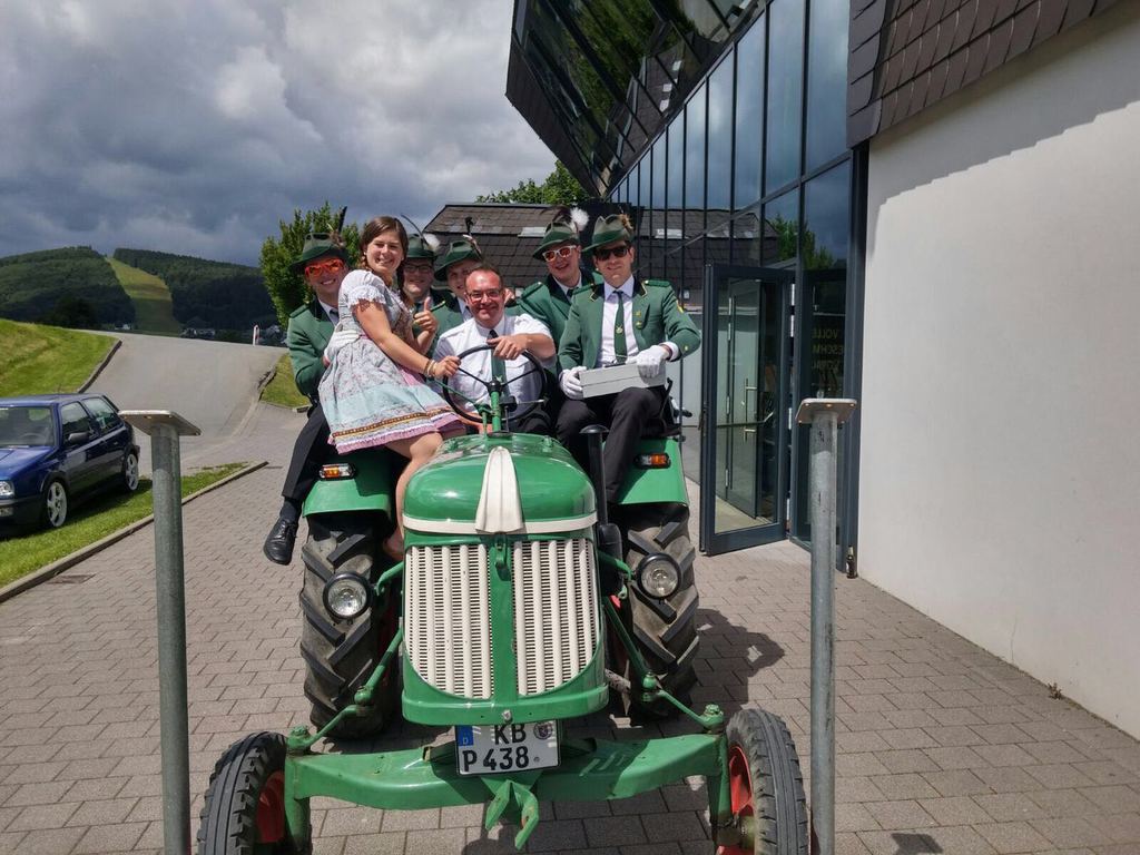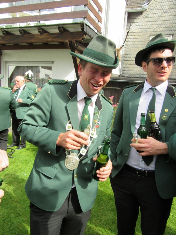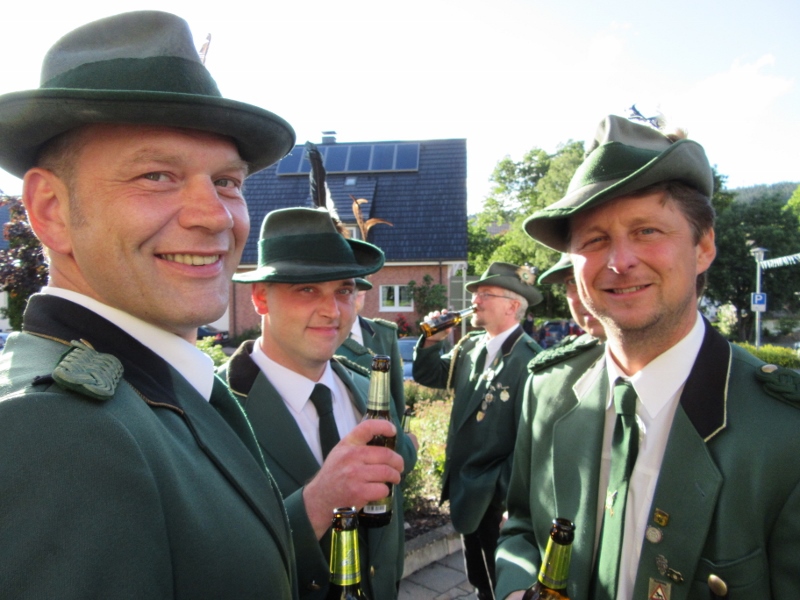 „Wie geil ist das denn“, ruft der 48 Jahre alte Schreiner und strahlt, während seine Schützenbrüder auf ihn zustürmen, um ihn zu feiern. Er bekommt ein Liter-Glas Bier in die Hand gedrückt, aber er kommt nicht zum Trinken, die Gratulanten nehmen ihn voll in Anspruch. Einige sind überrascht, denn so schnell steht der neue König in Willingen selten fest.